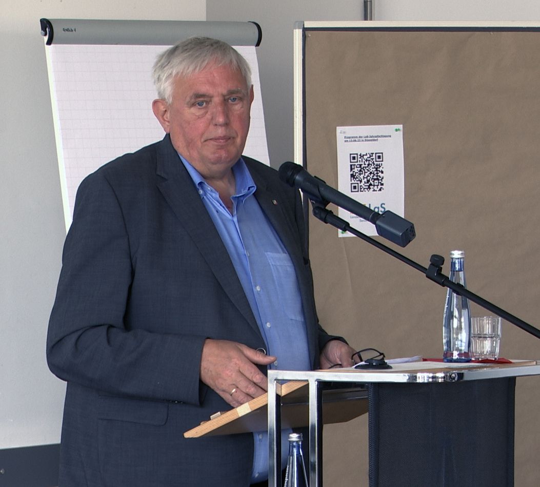 Karl-Josef Laumann, Minister für Arbeit, Gesundheit und Soziales des Landes Nordrhein-Westfalen, sprach in seinem Grußwort den Seniorenbüros in Nordrhein-Westfalen sein Dankeschön für ihre Arbeit aus. Er ging ausführlich auf die Pandemie, die Überflutung und den furchtbaren Angriffskrieg ein, der schlagartig die Welt verändert hat. Als eine akute Hilfsmaßnahme nannte der Minister beispielhaft den „Stärkungspakt NRW – gemeinsam gegen Armut“ zur Unterstützung von Menschen in sozialen Notlagen und der dafür bestehenden sozialen Infrastruktur mit einem Volumen von 150 Millionen Euro.
